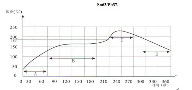 推薦的回流曲線適用于大多數(shù)SN63/PB37(錫63/鉛37)合金的有鉛錫膏,在使用時(shí),可把它作為建立回流工作曲線的參考,*佳的回焊曲線要根據(jù)具體的工序要求(包括:線路板的尺寸、厚度、密度)來設(shè)定的,它有可能是偏離此推薦值的。